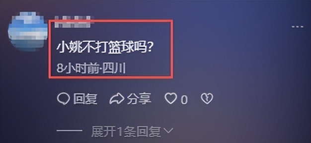 对此,评论区有网友问道:“小姚不打篮球吗”?