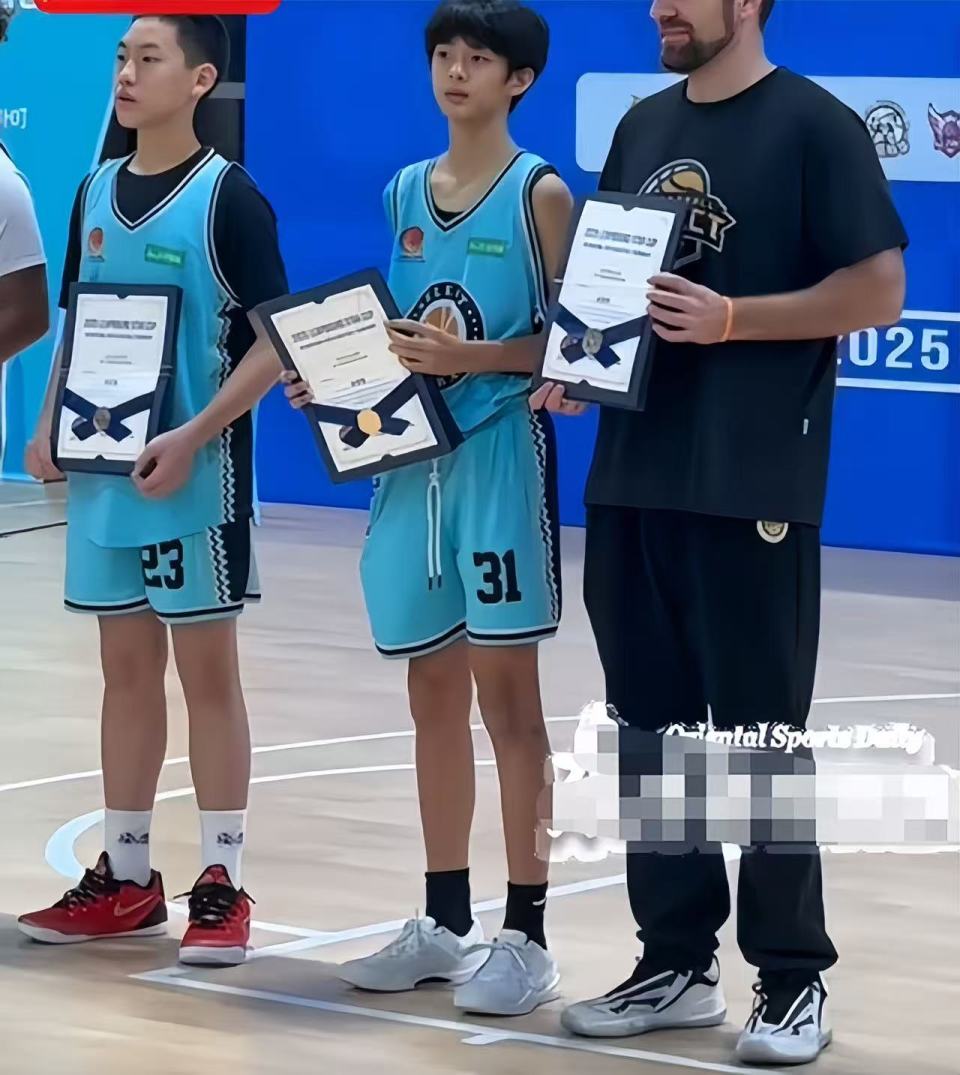 在不久前的上海2025跃界星途国际青少年篮球锦标赛上,邓超儿子还拿到了亚军的成绩,非常优秀。