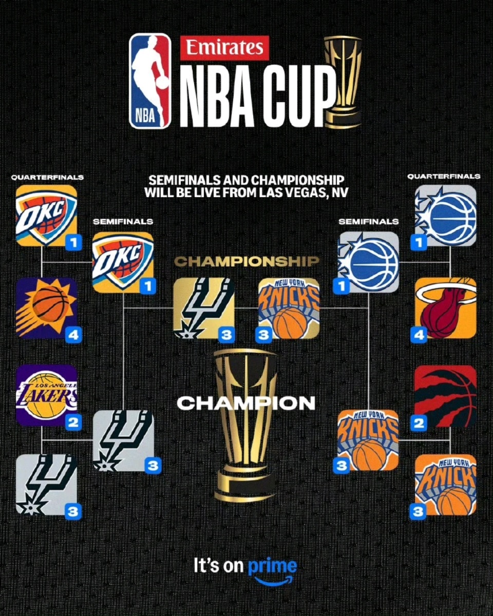 值得一提的是,这支刚刚淘汰了夺冠概率榜第二名洛杉矶湖人的马刺,连续掀翻NBA杯头两号热门,让所有预测模型彻底失灵!