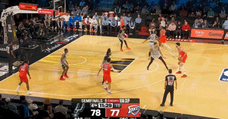 文班亚马第一次登场打了3分多钟,马刺追到仅差4分。马刺不敢让他连续打太久,文班下场之后,雷霆还了一波8-0。上半场最后4分钟,马刺落后到16分,文班重新登场。不仅迎着哈滕飙进三分,而且把雷霆的篮下进攻掐死了。
