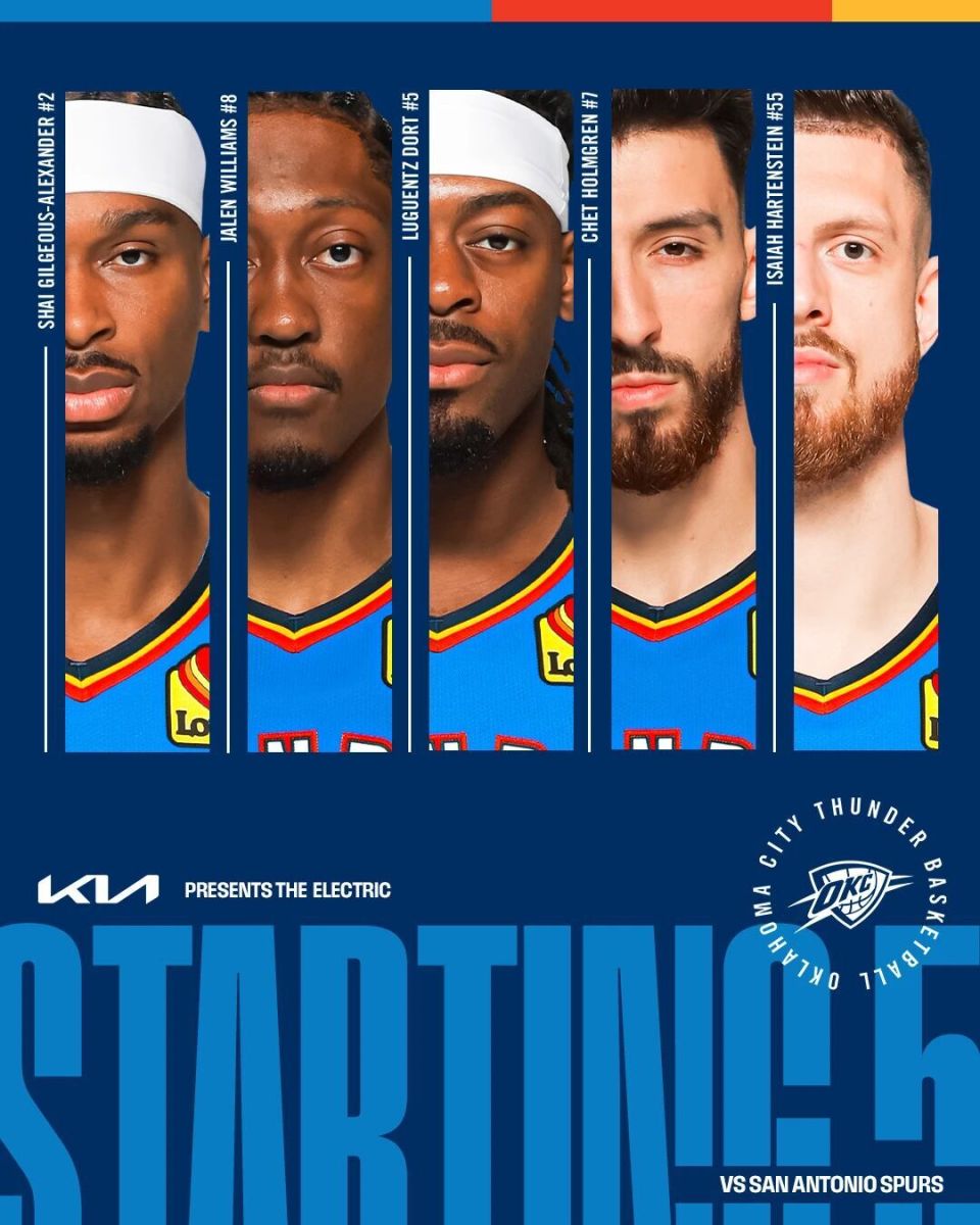 马刺首发:福克斯、卡斯尔、瓦塞尔、巴恩斯、科内特。雷霆这边,哈滕正式复出,首发五人组终于合体:亚历山大、多尔特、杰伦-威廉姆斯、霍姆格伦、哈尔滕施泰因。马刺想玩一招“田忌赛马”,整个第一节都没有让文班上场。