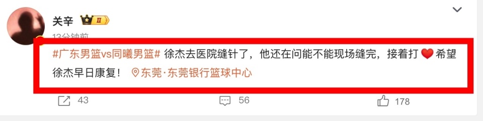 请注意杜锋,看到爱徒受伤流血,广东队主教练杜锋的情绪瞬间爆发。他愤怒地冲向场边,手指怒指对方球员,大声抗议对方的动作过大。徐杰倒地后,队医迅速进场进行了简单的止血包扎处理,值得注意的是,这种“劈叉式”投篮动作在联赛中引发的争议由来已久。包括山西队的张宁和辽宁队的赵继伟在内,多名球员都曾被指出在投篮时有类似的伸腿习惯。徐杰离场时,广东队总经理朱芳雨面色凝重,紧跟在身后一同前往更衣室。作为球队后场不可或缺的大脑,徐杰的健康状况直接关系到广东队接下来的排兵布阵,特别是对于强调快速反击和全场紧逼的广东队来说,少了一个能突能投且具备极高球商的控卫,战术运转的流畅性势必大打折扣。广东跟队记者关辛透露:徐杰去医院缝针了,他还在问能不能现场缝完,接着打,希望徐杰早日康复!(信息来源@关辛)
