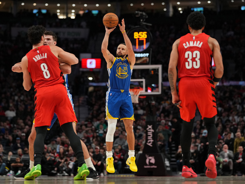 当勇士在客场面对开拓者时,库里从比赛一开始就展示出火热手感。