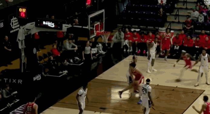 这一节还剩0.5秒时,队友把球发到瀚森手上,他第一时间把球抛出,竟然神奇地打板三分命中,可惜裁判回放后确定这一球超时无效,瀚森也露出了轻松的笑容。