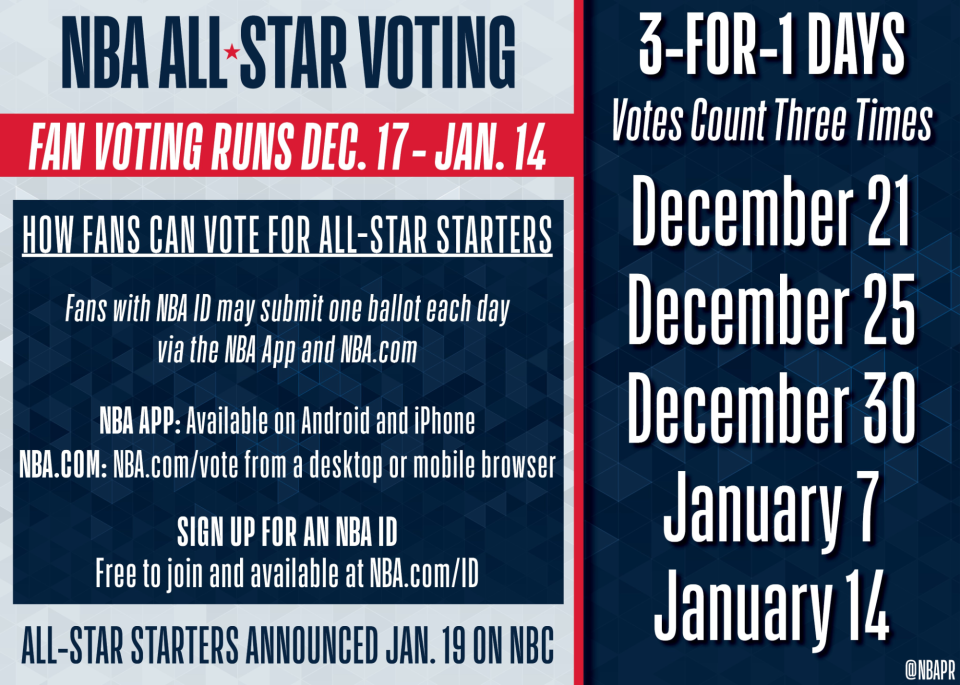 NBA官宣全明星投票流程:12月18日开启 首发名单1月20日公布
