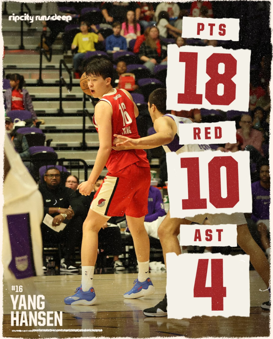对于杨瀚森的表现,主帅斯普利特送上了赞美:“中锋位置对我们非常重要,我认为杨瀚森是一个精英级别的传球手,他还有发展的空间。出战发展联盟对他非常有益,你知道我们在赛季中没有太多时间训练或者进行那种队内对抗训练,所以所有这些比赛对他们来说都超级重要,以保持他们的比赛节奏,身体对抗,获得一些实战演练的机会。”