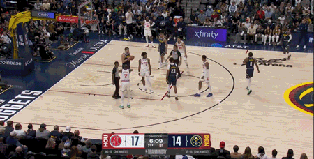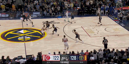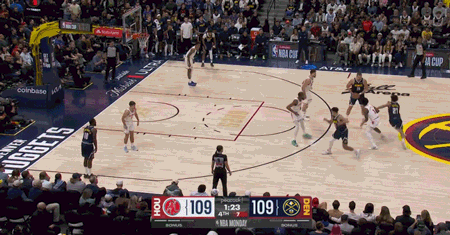 加时最后1分23秒,谢泼德造成约老师第6犯。掘金挑战失败,谢泼德2罚1中,火箭落后4分。穆雷2罚2中,申京2+1回应,最后37秒火箭落后3分。穆雷关键跳投不中,火箭球权。最后6.8秒,火箭前场边线球,申京仓促三分出手不中。