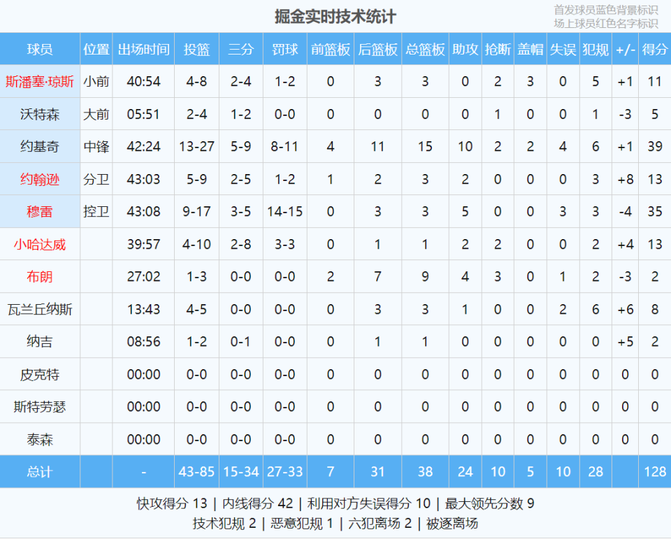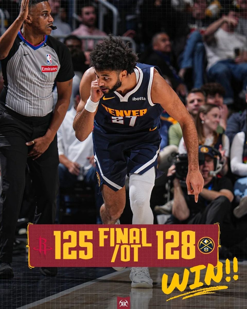 火箭最后一攻太着急了,可以再传一下。全场结束,掘金128-125再次险胜火箭。赛季至今,掘金已经双杀火箭。约基奇39分15板10助2断2帽、穆雷35分3板5助!申京33分10板10助2断、杜兰特25分5板7助5帽!这场堪称神仙打架!