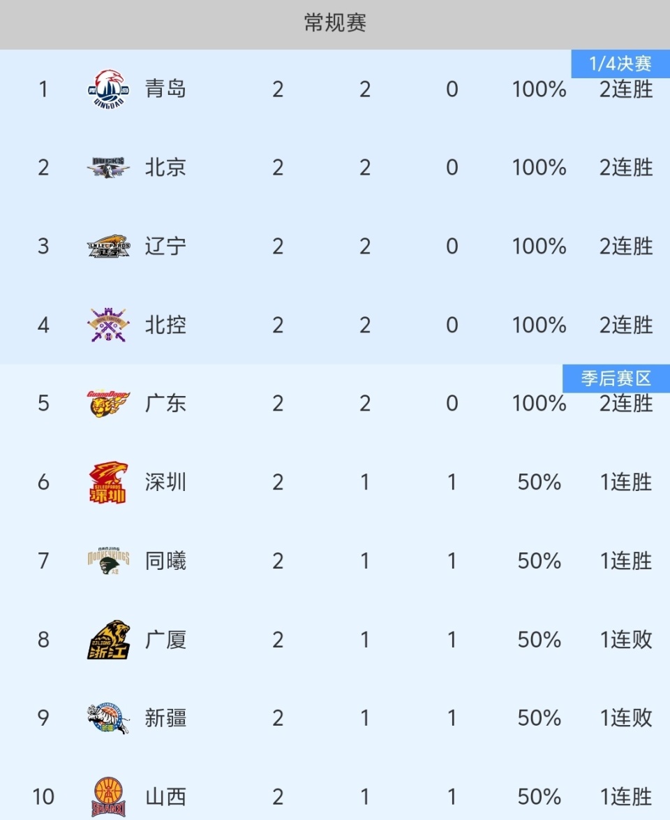 随着广东男篮101-98险胜、上海爆冷同曦首胜,CBA最新积分榜出炉!