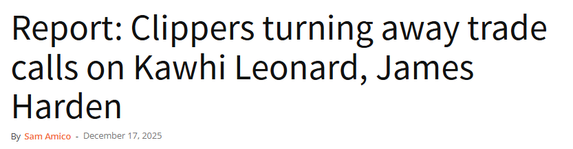 另据NBA记者马图尔报道,快船队如今虽深陷困境,但他们并未打算抛售核心球员,至少目前还没有这个计划。内部消息人士透露,快船拒绝了所有关于莱昂纳德、哈登以及祖巴茨的交易询价。背后的原因很简单,快船队2026年的首轮选秀权并不在自己手中,该选秀权归雷霆队所有,若此时拆解现有阵容进行重建,只会让雷霆队坐收渔利。