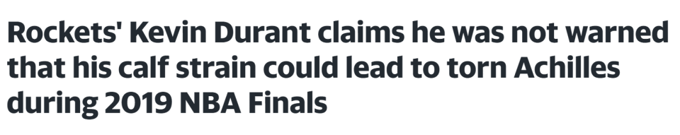 杜兰特:加盟勇士因不想再被包夹 当时没有人提醒我有跟腱风险