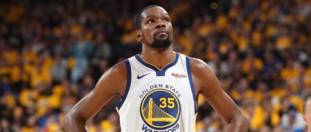 2019年总决赛,勇士饱受伤病困扰,前5场比赛他们大比分2比3落后,第6场比赛杜兰特临危受命带伤复出,首节比赛,杜兰特表现堪称完美,连续命中三分,帮助勇士一度取得10分领先,但第二节比赛,杜兰特在一次突破中遭遇伤病,赛后被确诊为跟腱断裂,勇士也最终在G6输球,无缘三连冠。