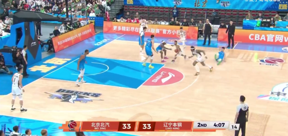 比赛第二节,北京队球员雷蒙在防守辽宁外援莫兰德的进攻掩护时向后倒地,裁判马上吹了莫兰德的进攻犯规。
