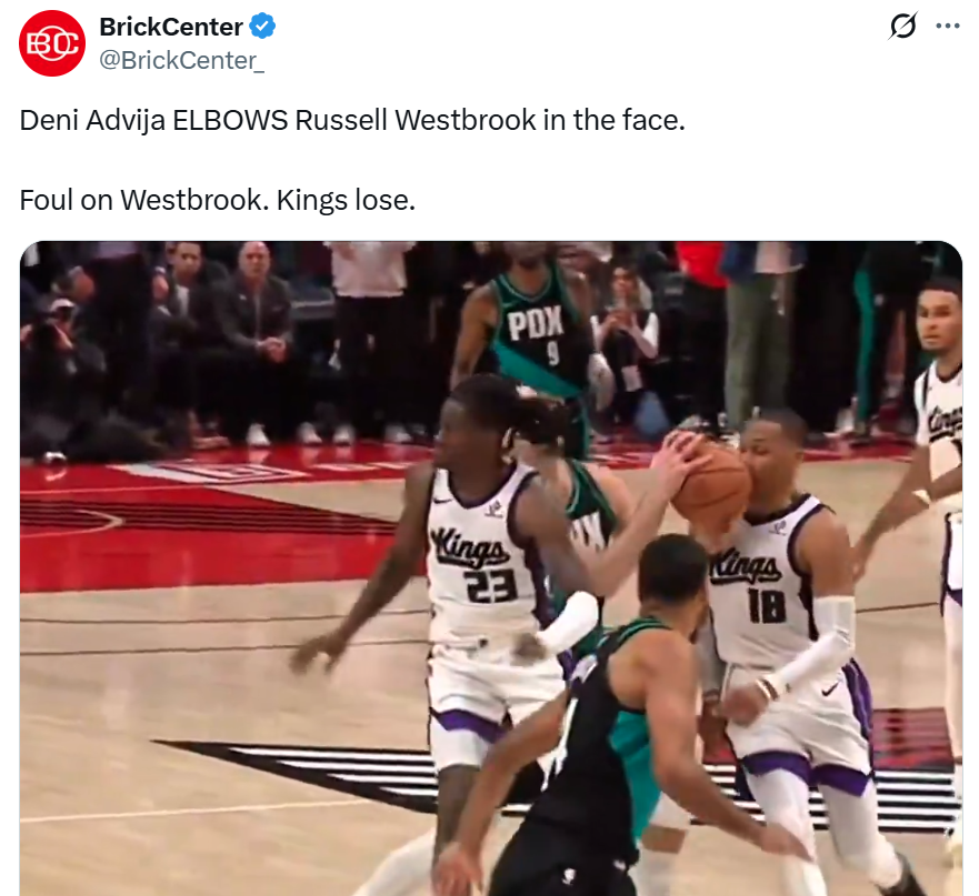 美媒BrickCenter也一针见血点评到:“阿夫迪亚肘击威少脸部,威少被吹犯规,国王输球。”