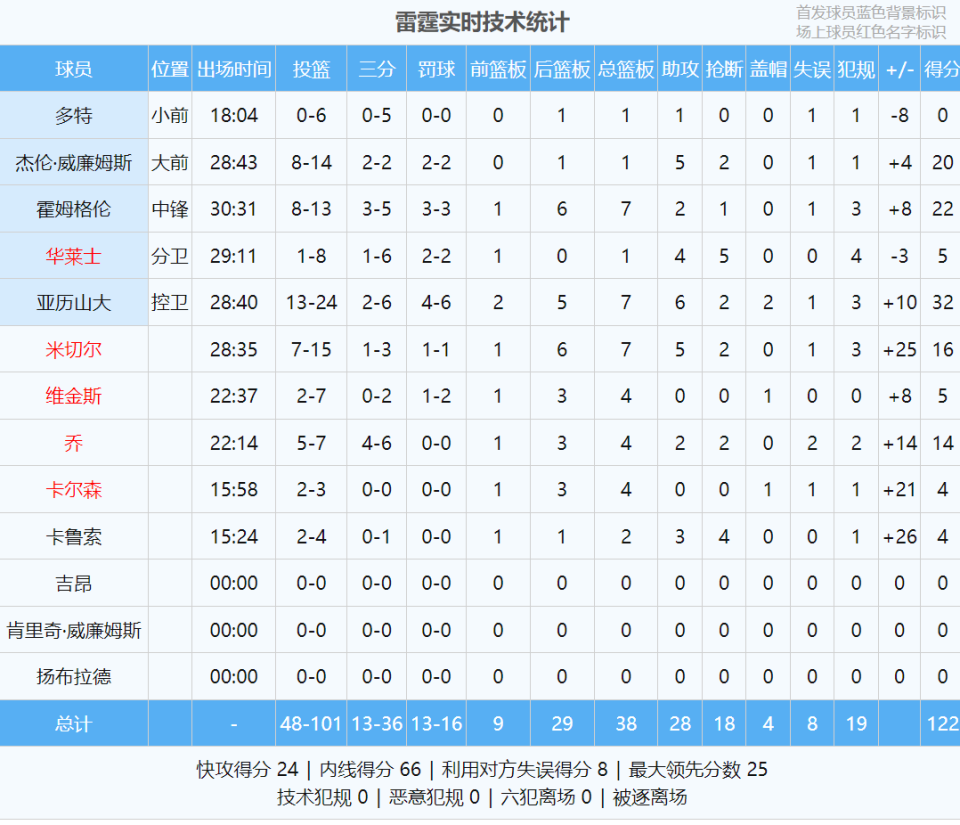 这场比赛本来就没悬念,雷霆手握快船2026年的首轮签,肯定要把快船往死里揍。亚历山大又是三节打卡,24投13中砍下32分7板6助2断2帽。霍姆格伦22分7板2助、杰伦-威廉姆斯20分5助2断。雷霆新三少合砍74分,太稳定了!