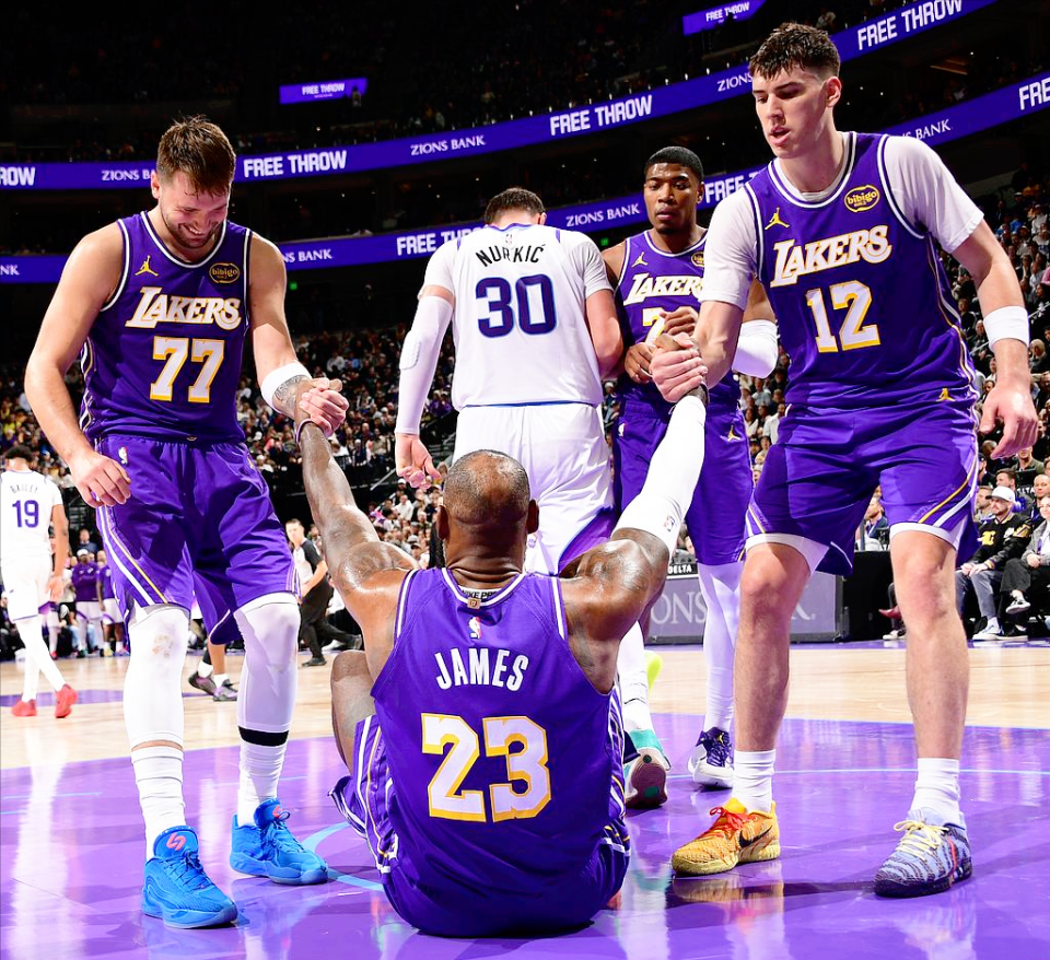 东契奇三双+詹姆斯28+7+10,湖人143-135胜爵士,4倍快乐藏不住了