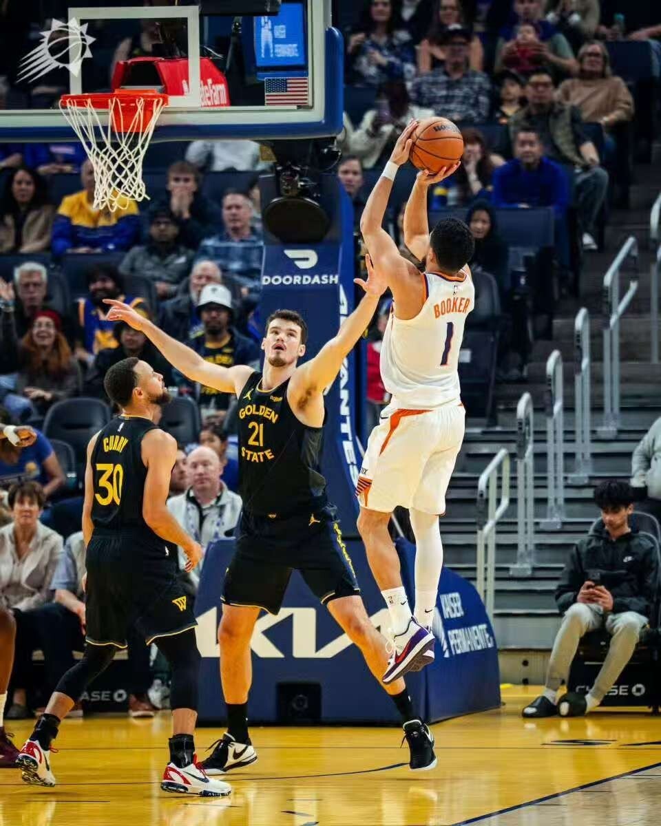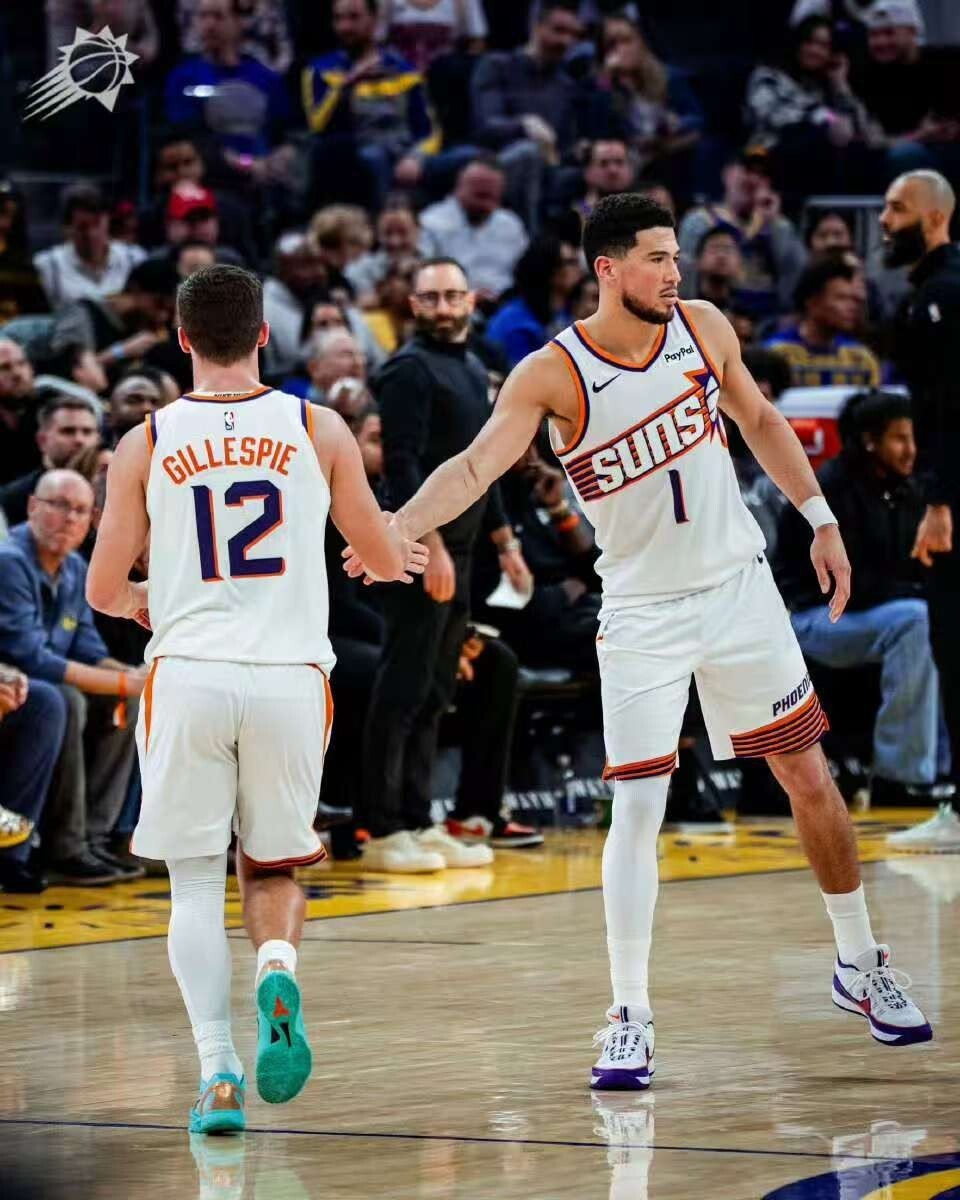 进入下半场,太阳队的进攻依旧低迷,球队投篮连番打铁,只能依靠布克、布鲁克斯2人维持火力,但终究进攻有限,而勇士虽然打的也不是很好,但替补球员表现真的给力,库里也找到手感,球队3节反超太阳6分,掌握了比赛的主动权!勇士末节继续猛攻,球队一下子把分差拉大到11分!眼看比赛愈发不妙,太阳队终于找回状态,布克连投带突独砍7分,带领球队把分差追到4分,重新打回了悬念!关键时刻,库里3分命中,伊戈达罗、古德温连砍5分回敬,巴特勒打成2+1,布克2+1打成,双方分差还是2分,最后时刻,吉莱斯皮投中3分,把分差追到1分!库里上篮得分,布克3分偏出,最终勇士119::116拿下太阳。