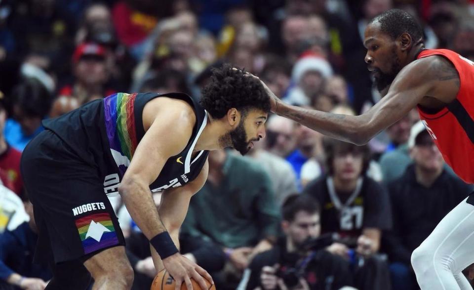 另一边的掘金,本场比赛之前,20胜6负排名西部第2;同样是这个赛季的争冠热门之一,约基奇和穆雷的双人组,状态拉满了。