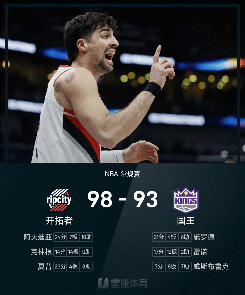 阿夫迪亚砍下24分10助攻,率队连续战胜国王。