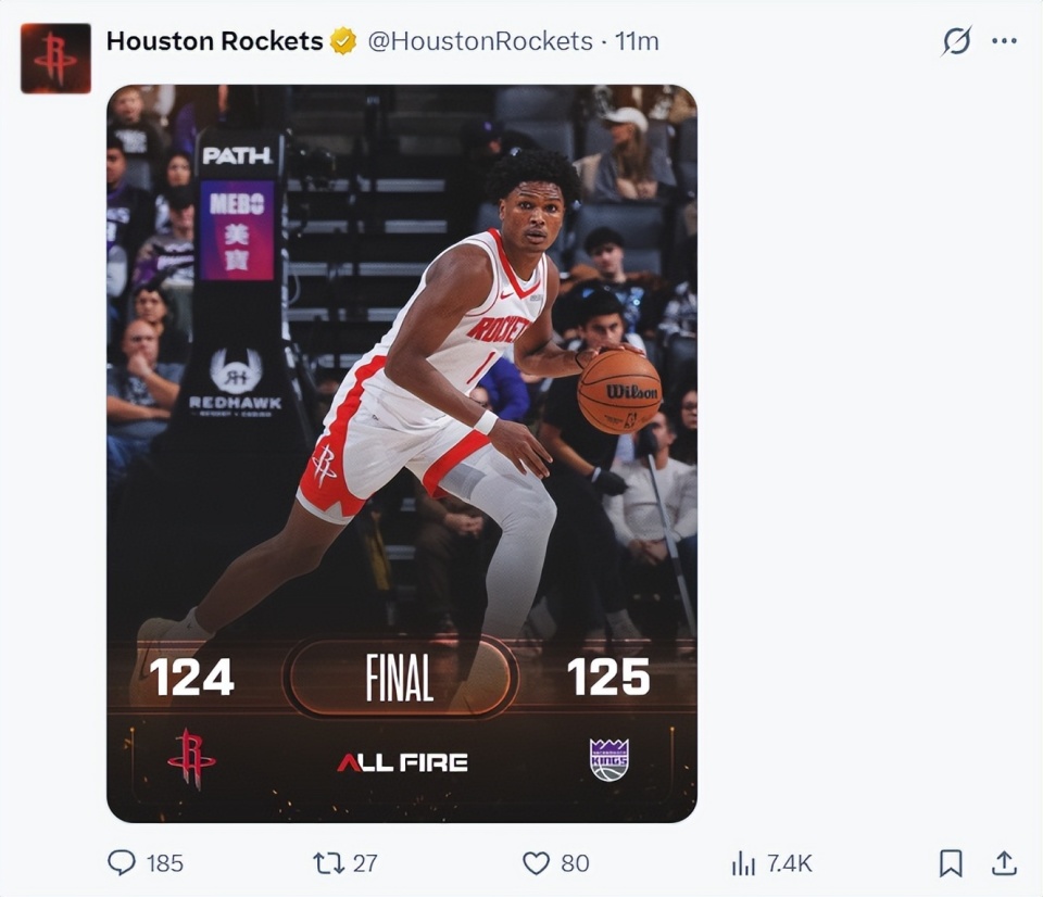 末节火箭一度领先到14分,结果国王打出12-0乌度卡连叫两个暂停,还是申京单打雷诺关键球,随后2+1暴扣稳定战局,申京制造雷诺篮下一个失误,申京又拼一个前场篮板,申京想造三分犯规不中,杜兰特三分绝杀也不中。