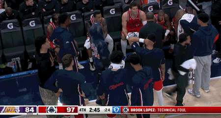 北京时间12月22日,快船连遭两个打击:1、祖巴茨左脚踝二级扭伤,至少缺阵三周;2、一段快船板凳席内讧的视频在网络流传。教主查了一下比赛录像,这是昨天快船主场vs湖人,第四节还剩2分45秒,拉拉维亚造成大洛佩斯犯规。