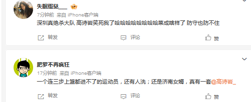 有球迷点评说道:深圳真绝杀大队 高诗岩笑死我了。