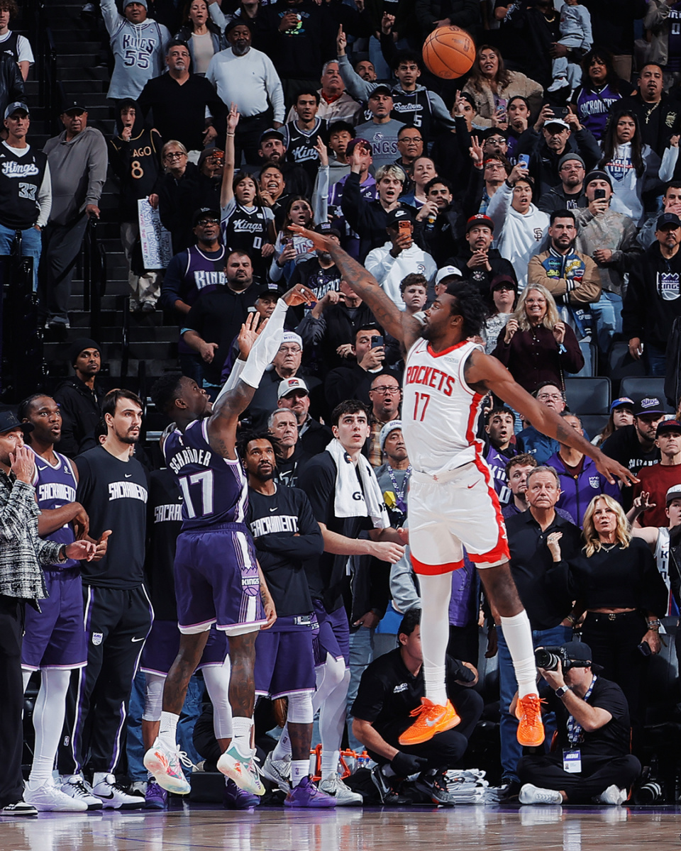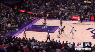 本场比赛,火箭在末节领先14分的情况下被拖进加时,威少命中绝平三分,杜兰特错失三分绝杀;加时赛,两队打得十分刺激,最后2.2秒施罗德命中三分准绝杀,杜兰特再次投丢绝杀球,最终火箭加时124-125惜败国王。