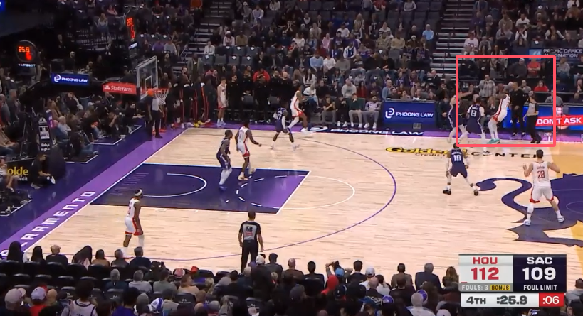 第二次漏判发生在末节还剩1分32秒,裁判报告指出,穆雷防守时接触到阿门的手臂,影响了后者的进攻,这应该吹罚穆雷防守犯规,阿门本该获得两次罚球,这一次漏判是火箭吃亏。