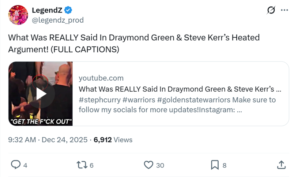 在勇士队120-97大胜魔术比赛第三节,追梦与主教练科尔在替补席爆发内讧,随后前者离开替补席径直回到更衣室,不久后身穿热身服又回到替补席,但缺席后续比赛。