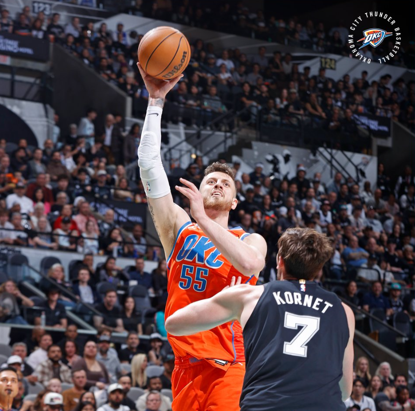 因为文班亚马替补的效果很好,马刺队继续让科内特打先发,此役为了应对马刺这种轮换戴姆波特让哈腾重返先发打双塔,但这种改变并没有打出效果,马刺依靠小快灵还领先雷霆,SGA首节5分2助攻,杰威首节拿到6分3助攻。