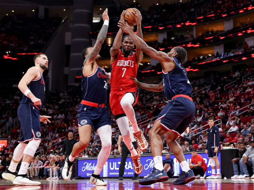 小卡41分限时返场,快船擒火箭摆脱垫底,杜兰特末节苦坐替补席
