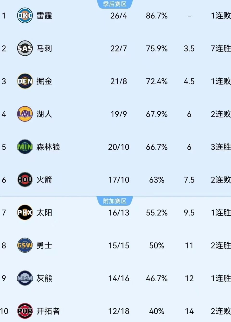 本赛季至今,火箭仅取得17胜10负排名西部第六,不如上赛季同期的18胜9负,暂时领先杜兰特的老东家&西部第七的太阳两个胜场而已。