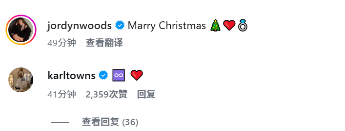 唐斯和女友伍兹在Instagram上宣布订婚,他们发布了一系列照片,并用谐音梗来配文"Marry(嫁)Christmas"。这对情侣在近日订婚之前已经交往了五年。