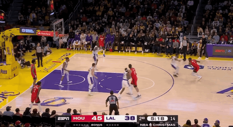 火箭与湖人进行年终大战的焦点对决,杜兰特与詹姆斯展开生涯的第5次年终大战较量,此前詹姆斯3胜1负占优,如今大小王正面交锋,杜兰特势必全力争胜。首节比赛,杜兰特助攻伊森三分命中,为火箭取得首次运动战进球。伊森开局化身火箭奇兵,球队前12分中的10分与他有关,其中包括开局的连得8分。