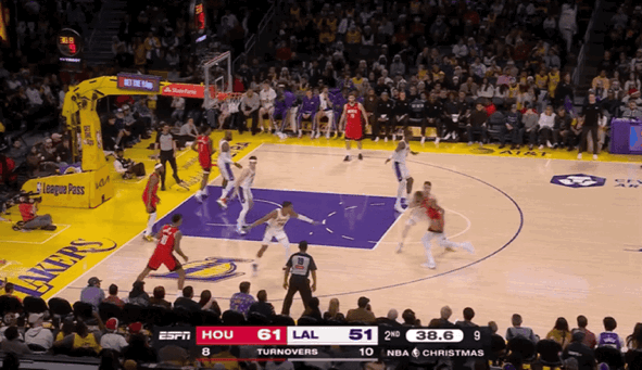 杜兰特成功率队冲击湖人内线,连续制造对手犯规获得罚球机会,希望借此重新掌握场上主动权。凭借着杜兰特再次带来招牌跳投命中,火箭重新拉开分差到双位数。半场比赛结束,火箭依旧领先湖人10分,杜兰特10中6得到16分。