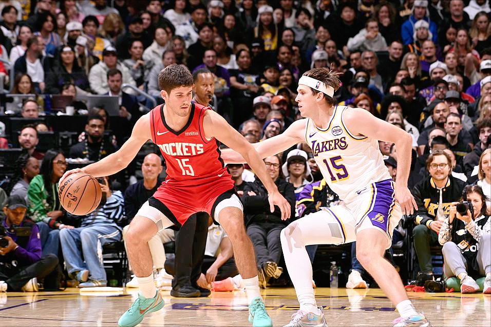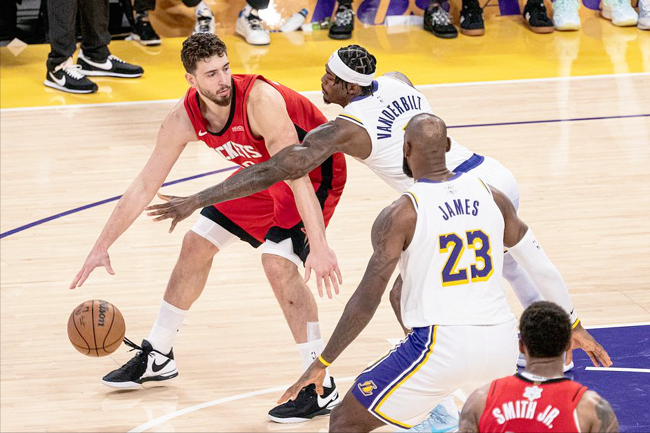 先说说火箭这边,能赢球全靠赛前的变阵调整。乌杜卡又一次改变首发阵容,把塔里-伊森提上首发顶替奥科吉,这步棋直接盘活了防守端。一方面,塔里-伊森和阿门-汤普森两个防守强点同时在场,刚好能罩住湖人队的多点持球人;另一方面,芬尼-史密斯复出迎来赛季首秀,让乌杜卡在轮转阶段有了更多牌可以打,防守厚度一下子就上来了。