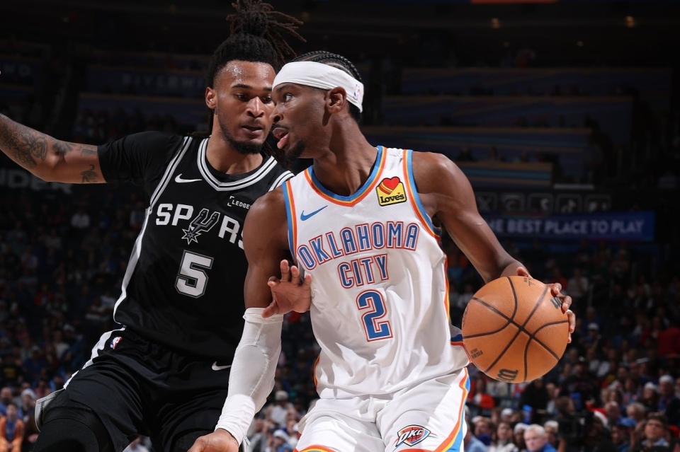 亚历山大打出了很惨淡的一战,连续砍20+的势头都差点被终结,他19投7中,三分球6中1,所幸罚球8中7,拿到了22分。马刺死掐亚历山大的策略奏效了。主防亚历山大的卡斯尔立下了大功。这一战,他不仅防死了亚历山大,还打出了高效的进攻,11投8中,罚球5中3,得到19分4篮板7助攻1抢断。