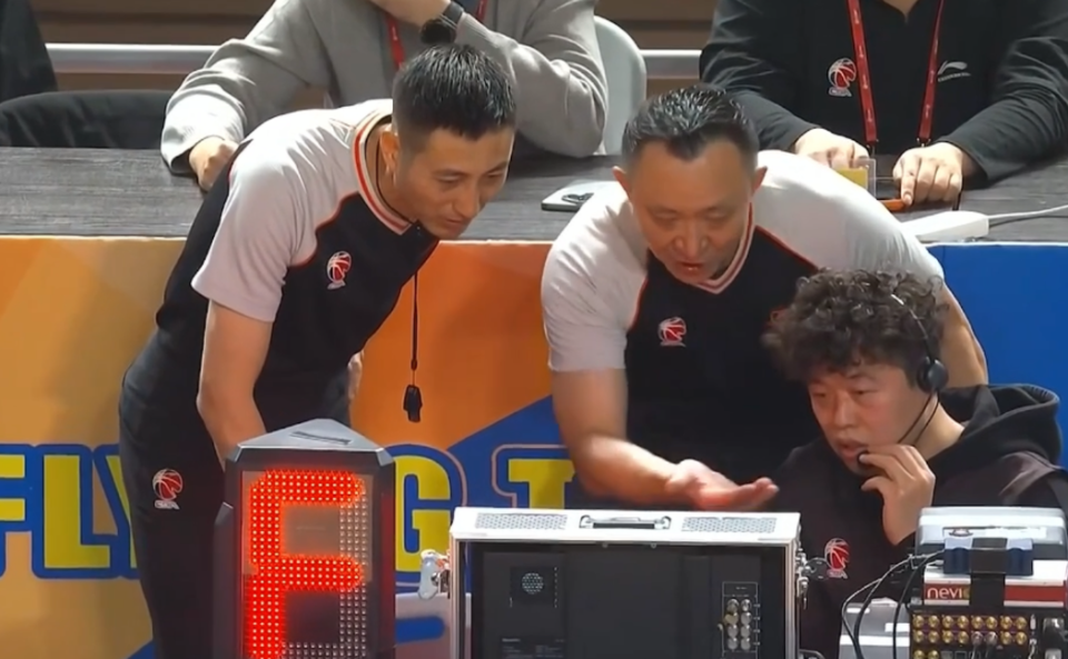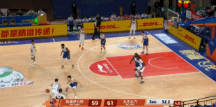 终场前3.1秒,赵睿切球阿不都,北京申请挑战,裁判看了很长时间还是挑战失败新疆球。