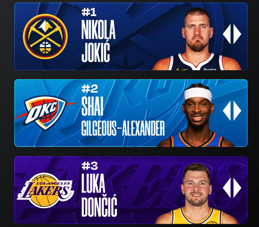 约基奇MVP三榜第一!官方排名七连霸 赔率概率也超亚历山大