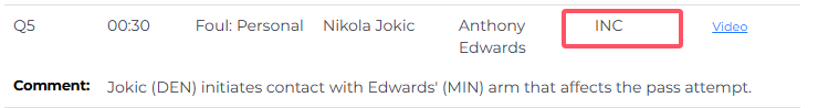 末节和加时赛最后2分钟唯一一次漏判发生在加时赛最后时刻,爱德华兹进攻时遭遇约基奇和穆雷的夹击,在约基奇的干扰下传球失误,掘金抢断后约基奇造成麦克丹尼尔斯犯规,最终约基奇两罚一中;裁判报告指出,距离比赛结束还剩30秒,约基奇包夹时打到了爱德华兹的手臂,这影响了爱德华兹传球,应该吹罚约基奇打手犯规,华子本该获得两次罚球。
