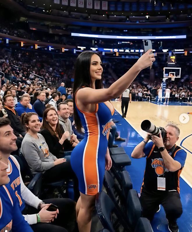 北京时间12月27日,在刚刚过去的圣诞大战尼克斯主场以126-124险胜克里夫兰骑士的比赛场边,一位尼克斯美女引起了现场摄影师的注意。在这位尼克斯美女自拍期间,摄影师抓住了超美瞬间,为其拍照。