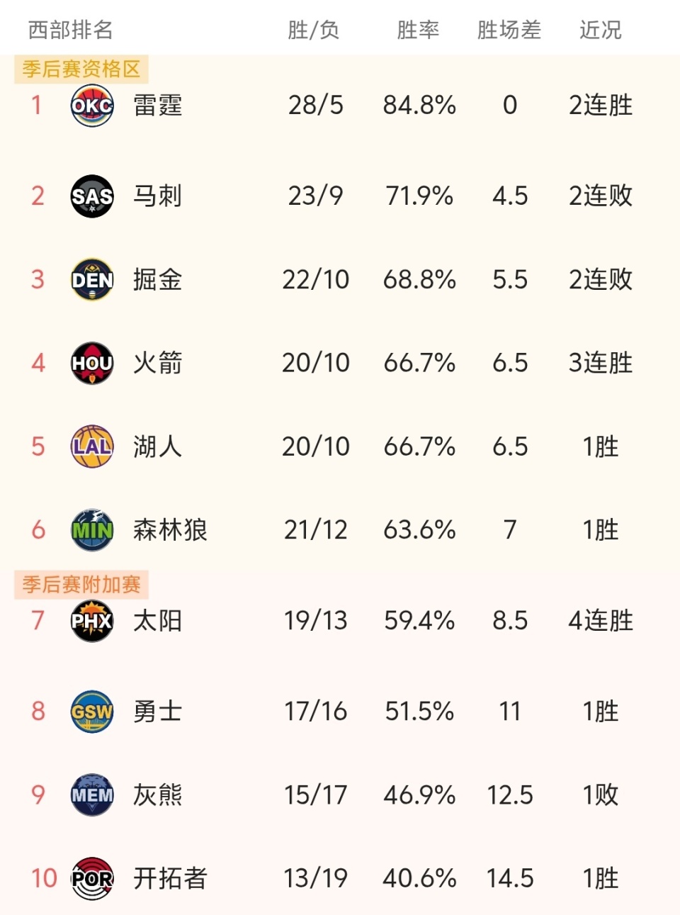 随着掘金123-147惨败,火箭利好,NBA最新积分榜出炉:西部太乱!