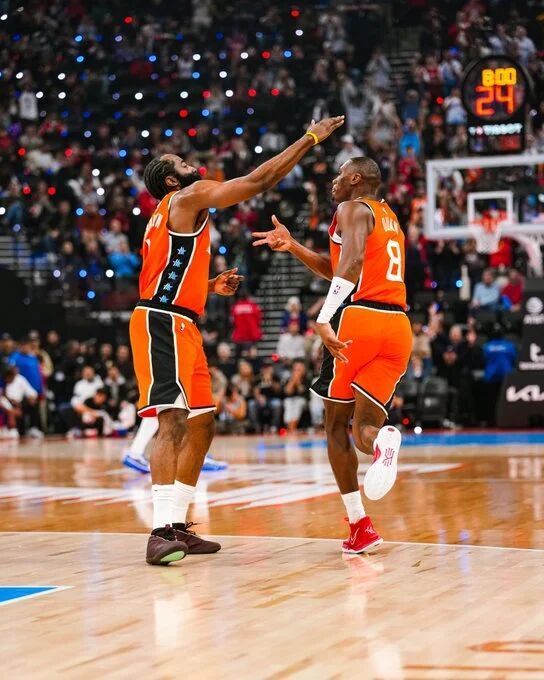 自从哈登离开火箭,他从心态到打法都在向着“纯控卫”的方向转型。上赛季,莱昂纳德缺席期间,哈登既当爹又当妈,场均出手达到16.4次,但过高的负荷影响了其效率。本赛季,哈登被逼着进一步增加出手,他反而投出了62.7%、生涯第二高的真实命中率,这跟他休赛期的自律有直接关系。