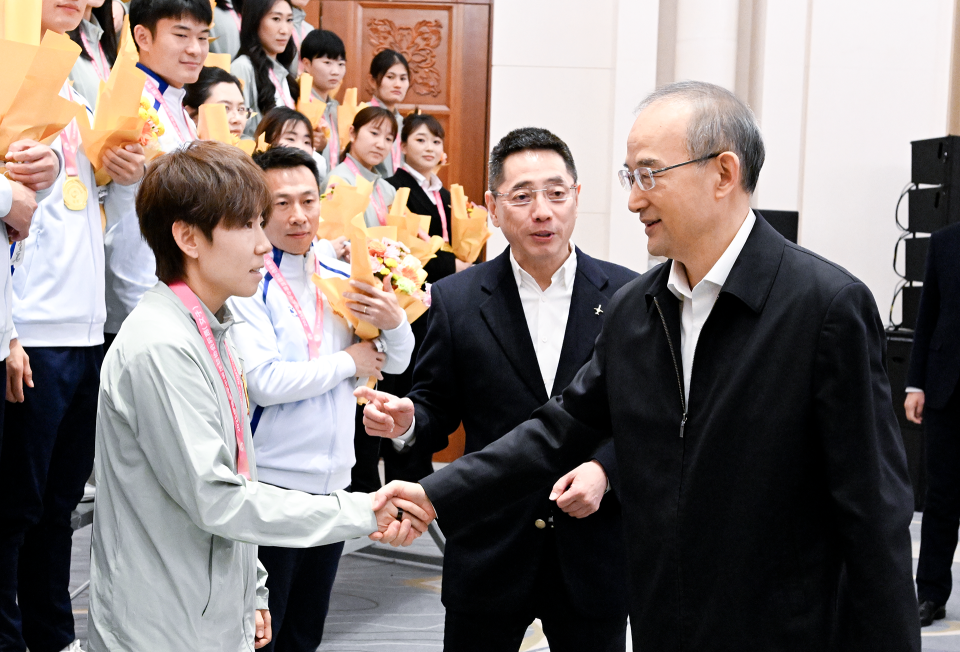 省委书记黄强、省长胡玉亭,接见载誉归来的两队运动员、教练员