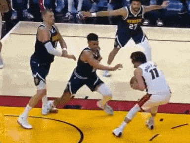 言归正传,最近结束的掘金123-147客场不敌热火比赛,临近次节结束前一次防守回合约基奇被队友误伤,退赛前打了约19分钟贡献21分5板8助。
