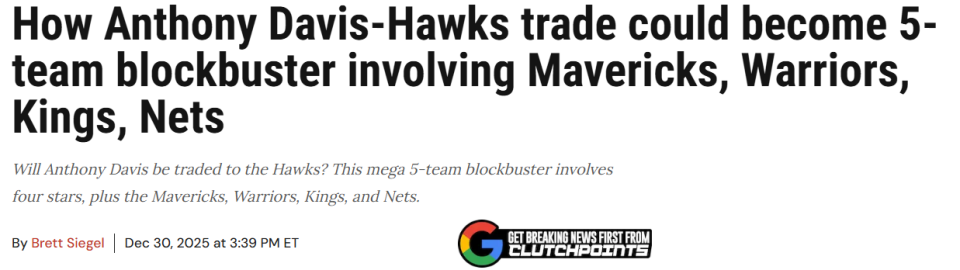 北京时间2025年12月31日,联盟多支球队又有了新的交易动向。老鹰7连败,而且当家核心特雷杨有极大可能性执行26-27赛季的球员选项,为双方之后的续约埋下隐患,在独行侠明确拒绝杨后,老鹰管理层依旧不愿意放弃得到浓眉的机会;与此同时,勇士与篮网传出了交易流言,库明加已经被边缘化,但总经理邓利维对小迈克尔波特以及中锋克拉克斯顿感兴趣,至于21年的7号秀,国王队依旧念念不忘,为此,ClutchPoints名记Brett Siegel整合了交易流言,并大胆猜想了一笔涉及五队的模拟交易。