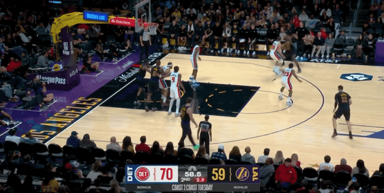 次节比赛开始,坎宁安连续突破得手,活塞扩大领先优势到15-1,双方分差迅速来到14分。詹姆斯三分命中为湖人止损,东契奇撤步跳投命中,杜伦和汤普森连续站上罚球线4罚3中,詹姆斯三分再进。两队交替得分,活塞始终维持分差在10分左右,海斯和拉拉维亚连得帮助湖人迫近分差,萨瑟三分回应。范德比尔特和史密斯连得5分,里德上篮打进2+1,坎宁安扣篮得手,詹姆斯和东契奇连得6分。