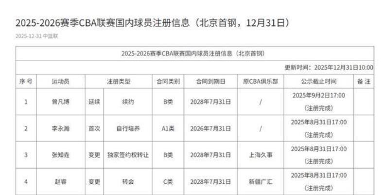 CBA官宣!曾凡博完成注册,元旦大战首钢对阵广东