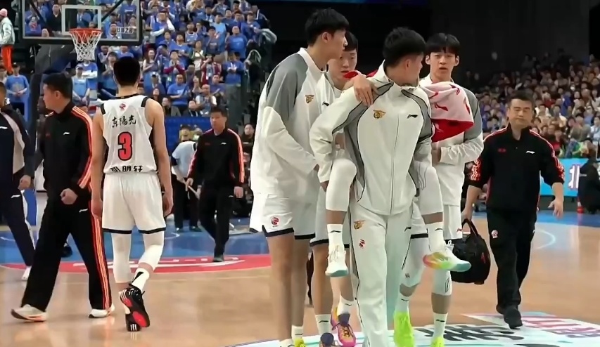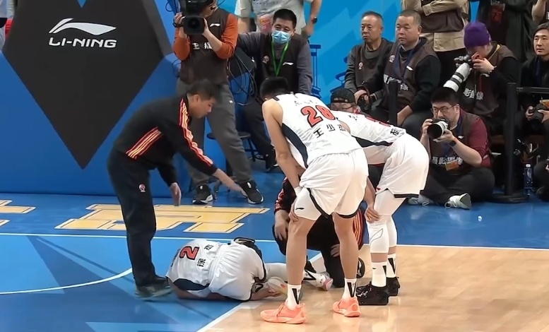 望无大碍!周琦被萨姆纳顶翻后误伤徐杰,徐杰被队友背离场