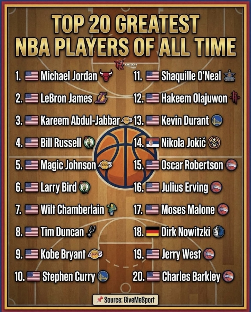 最近GiveMeSport发布了“NBA历史最伟大球员TOP20”,乔丹、詹姆斯、贾巴尔排在最前面,邓肯、库里、科比也都挤进了前十。榜单里最扎眼的其实不是这些名字,而是他们被摆在了哪个位置:库里排第10,真能压过第11的奥尼尔吗?拉塞尔排第4,真就比第5的魔术师、第6的伯德更高一档吗?同样是历史级球员,这种“谁在谁前面”的排序一明确,争论自然就绕不开了。数据截至2025年12月29日。